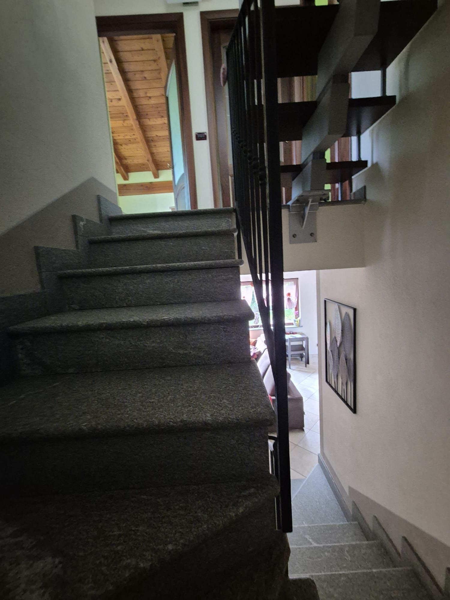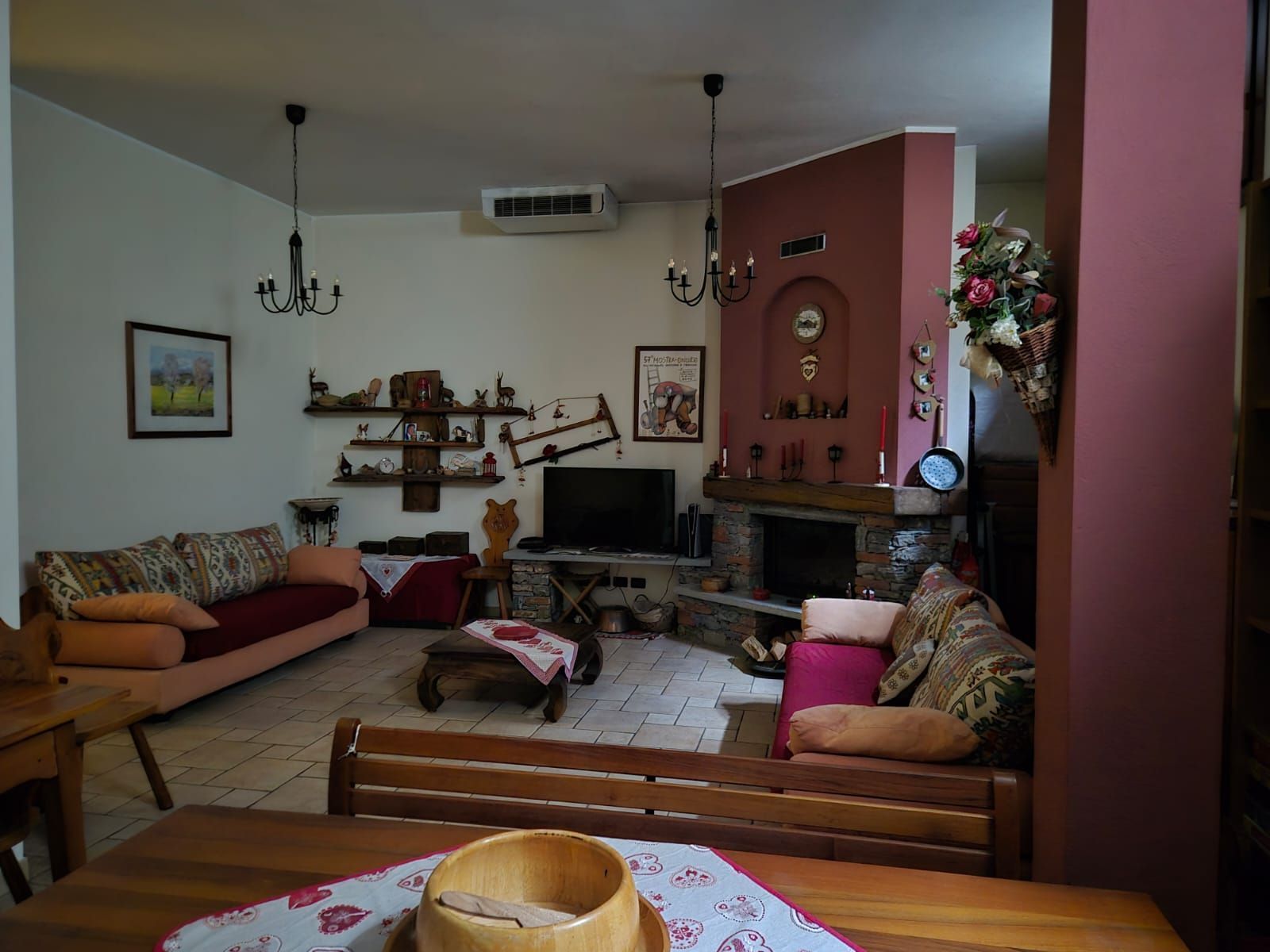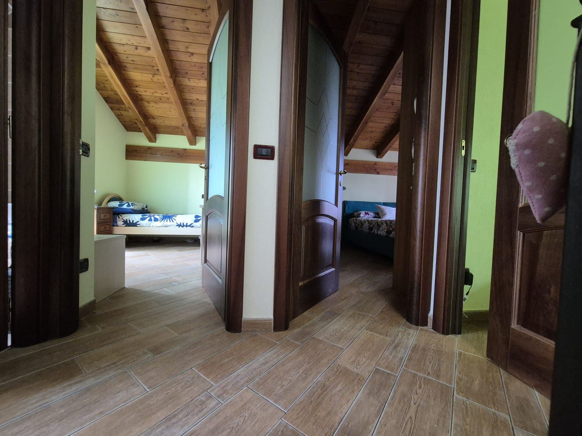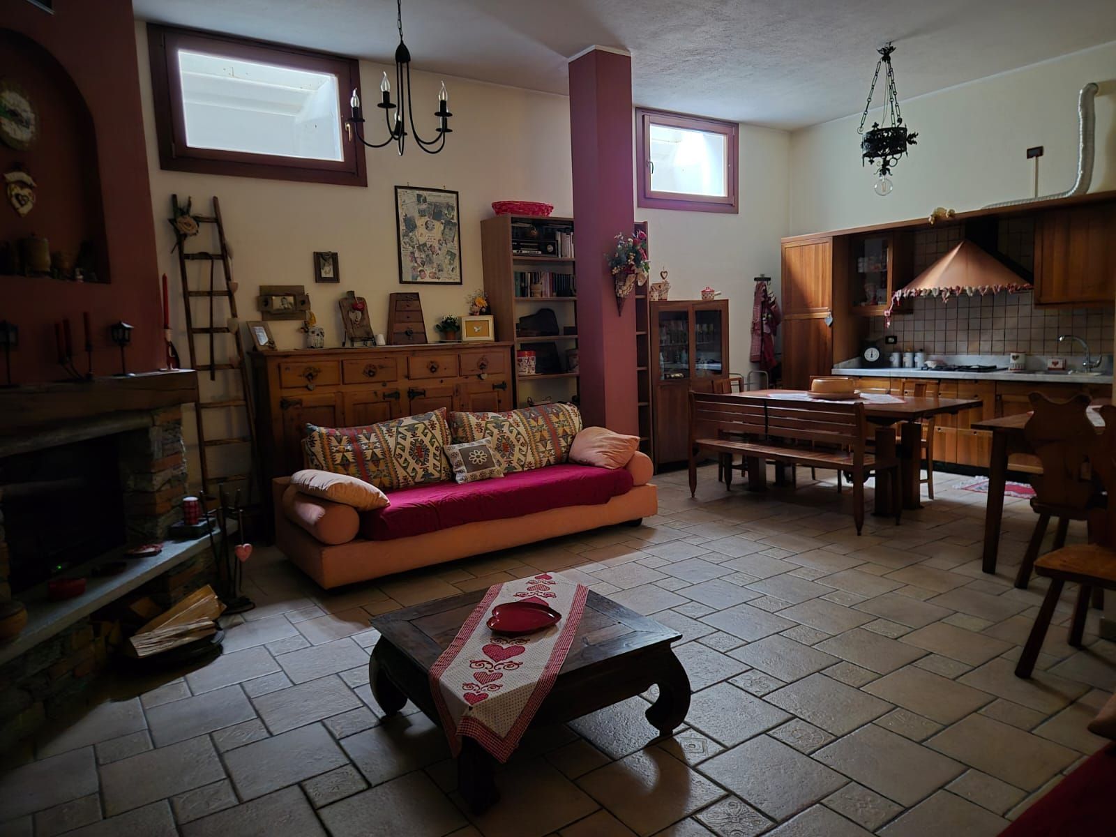 La villetta, che viene proposta in vendita completa di arredamento, con alcuni complementi in legno di artigianato tradizionale unici, è posta in un contesto molto riservato con ingresso indipendente, si sviluppa su due livelli abitativi, costituiti da: piano terreno _ con area verde esterna di pertinenza, di circa 200 mq, che la circonda, porticato di accesso alla zona giorno luminosa e soleggiata anche di inverno vista l'esposizione a sud-ovest, costituita da un unico ambiente open-space con ingresso, solotto, zona pranzo e cucina con balcone di accesso al gazebo esterno; piano primo - si sviluppa tutta la zona notte, con tre acoglienti camere da letto con balcone su terrazzo esposto a ovest dal quale si può godere di una bellissima vista paesaggistica, uno spazioso bagno con vasca instile vintage e balcone su terrazzo esposto a est. La scala interna è stata realizzata da un artigiano locale con pietre levigate e righiere in ferro battuto. Completano la proprietà, la mansarda del piano sottotetto e il piano interrato, costituito da un'ampia taverna con cucina a vista e salotto con caminetto a legna provvisto di sistema di ventilazione regolabile che oltre a creare un'atmosfera calda e accogliente, grezie a un sistema di areazzione porta calore alla stanze del piano superiore, bagno/lavanderia, capiente cantina e box auto doppio con basculante elettrificata.