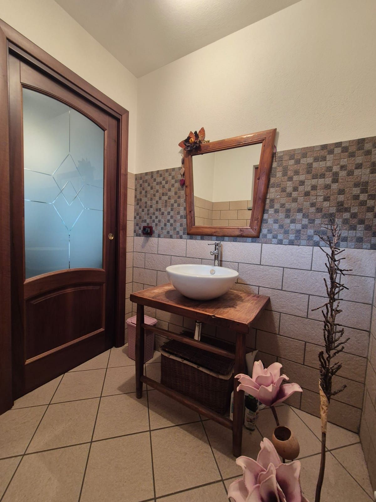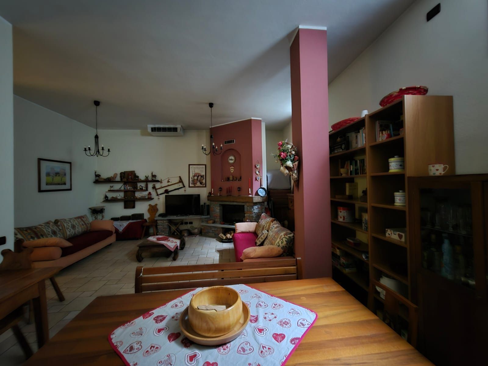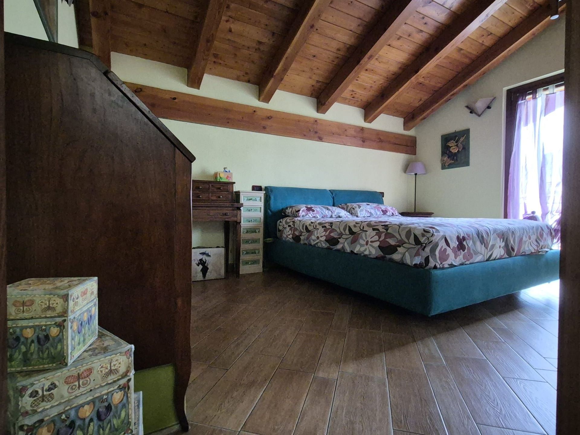 La villetta, che viene proposta in vendita completa di arredamento, con alcuni complementi in legno di artigianato tradizionale unici, è posta in un contesto molto riservato con ingresso indipendente, si sviluppa su due livelli abitativi, costituiti da: piano terreno _ con area verde esterna di pertinenza, di circa 200 mq, che la circonda, porticato di accesso alla zona giorno luminosa e soleggiata anche di inverno vista l'esposizione a sud-ovest, costituita da un unico ambiente open-space con ingresso, solotto, zona pranzo e cucina con balcone di accesso al gazebo esterno; piano primo - si sviluppa tutta la zona notte, con tre acoglienti camere da letto con balcone su terrazzo esposto a ovest dal quale si può godere di una bellissima vista paesaggistica, uno spazioso bagno con vasca instile vintage e balcone su terrazzo esposto a est. La scala interna è stata realizzata da un artigiano locale con pietre levigate e righiere in ferro battuto. Completano la proprietà, la mansarda del piano sottotetto e il piano interrato, costituito da un'ampia taverna con cucina a vista e salotto con caminetto a legna provvisto di sistema di ventilazione regolabile che oltre a creare un'atmosfera calda e accogliente, grezie a un sistema di areazzione porta calore alla stanze del piano superiore, bagno/lavanderia, capiente cantina e box auto doppio con basculante elettrificata.