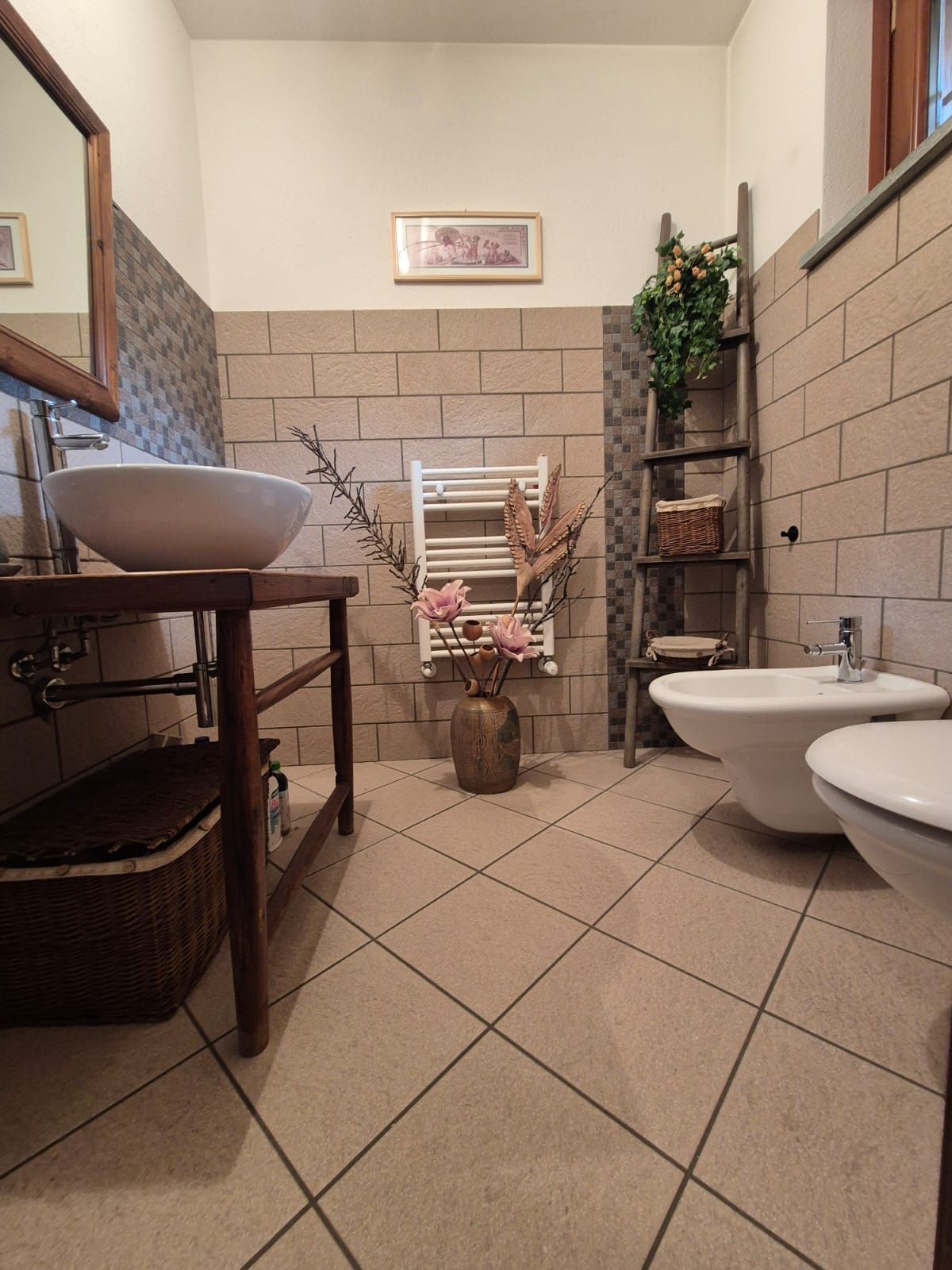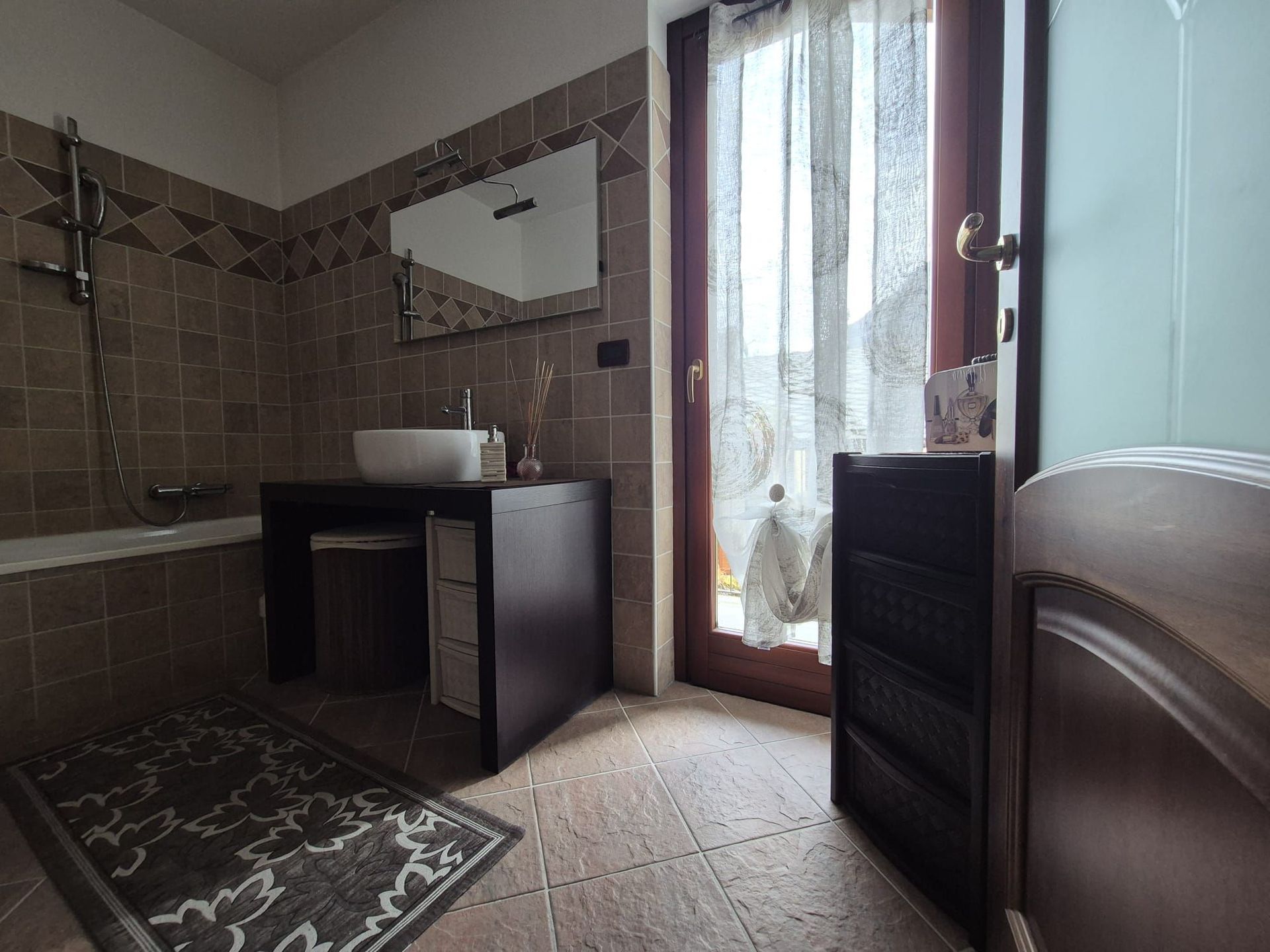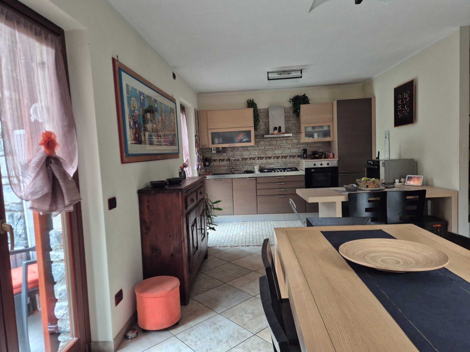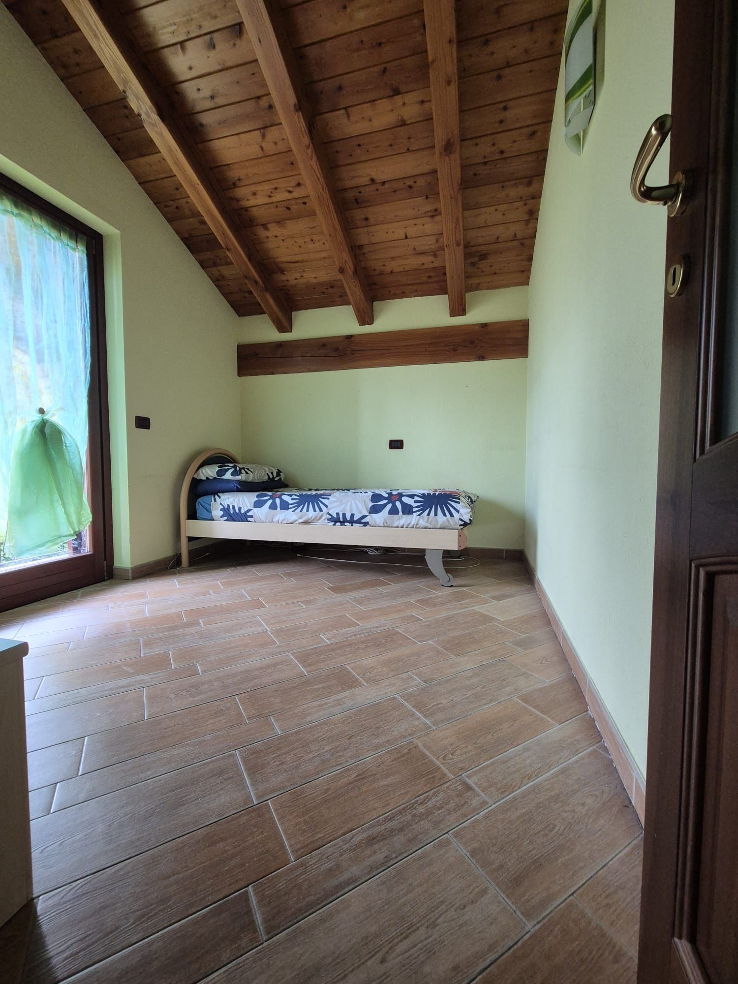 La villetta, che viene proposta in vendita completa di arredamento, con alcuni complementi in legno di artigianato tradizionale unici, è posta in un contesto molto riservato con ingresso indipendente, si sviluppa su due livelli abitativi, costituiti da: piano terreno _ con area verde esterna di pertinenza, di circa 200 mq, che la circonda, porticato di accesso alla zona giorno luminosa e soleggiata anche di inverno vista l'esposizione a sud-ovest, costituita da un unico ambiente open-space con ingresso, solotto, zona pranzo e cucina con balcone di accesso al gazebo esterno; piano primo - si sviluppa tutta la zona notte, con tre acoglienti camere da letto con balcone su terrazzo esposto a ovest dal quale si può godere di una bellissima vista paesaggistica, uno spazioso bagno con vasca instile vintage e balcone su terrazzo esposto a est. La scala interna è stata realizzata da un artigiano locale con pietre levigate e righiere in ferro battuto. Completano la proprietà, la mansarda del piano sottotetto e il piano interrato, costituito da un'ampia taverna con cucina a vista e salotto con caminetto a legna provvisto di sistema di ventilazione regolabile che oltre a creare un'atmosfera calda e accogliente, grezie a un sistema di areazzione porta calore alla stanze del piano superiore, bagno/lavanderia, capiente cantina e box auto doppio con basculante elettrificata.