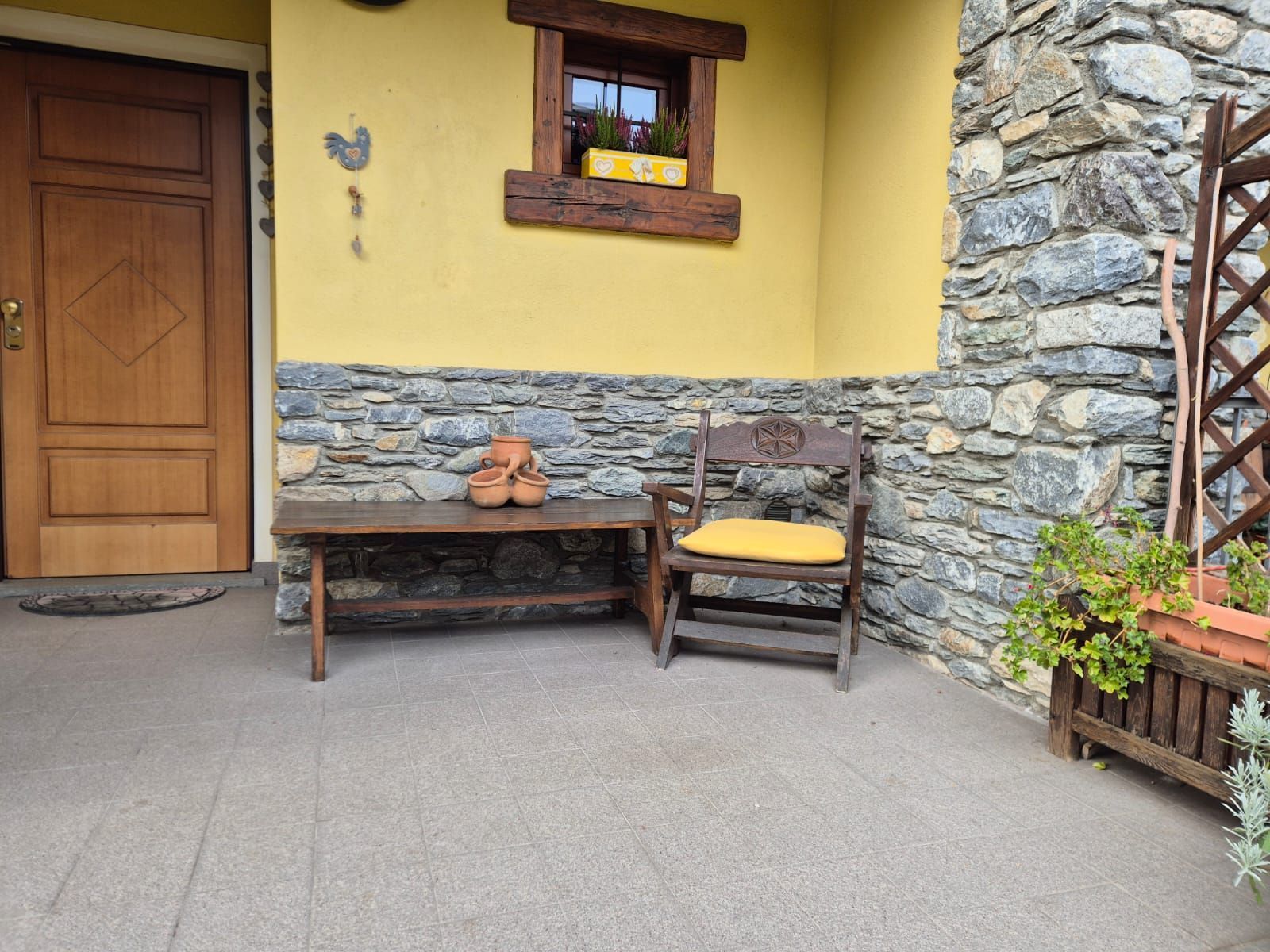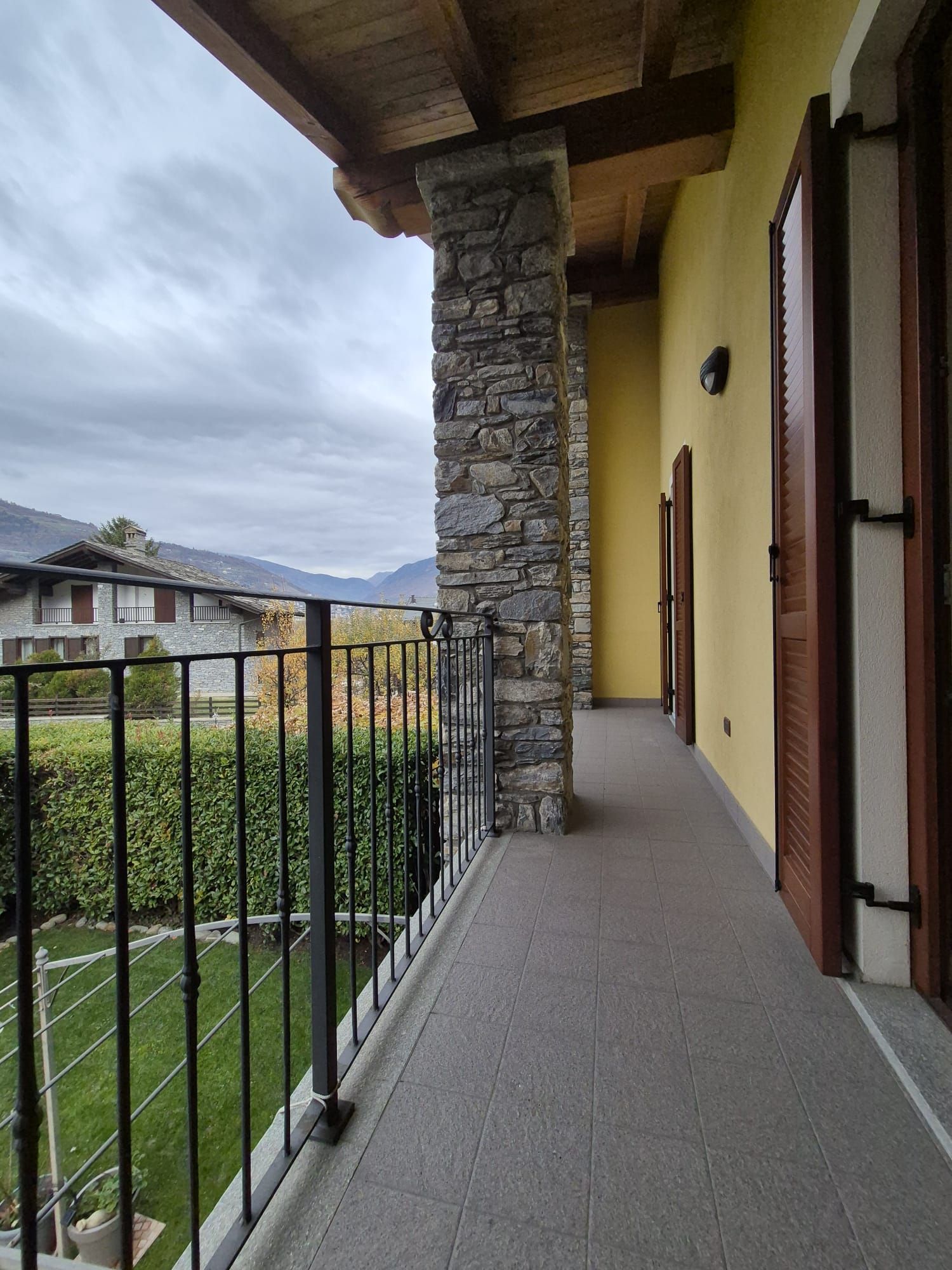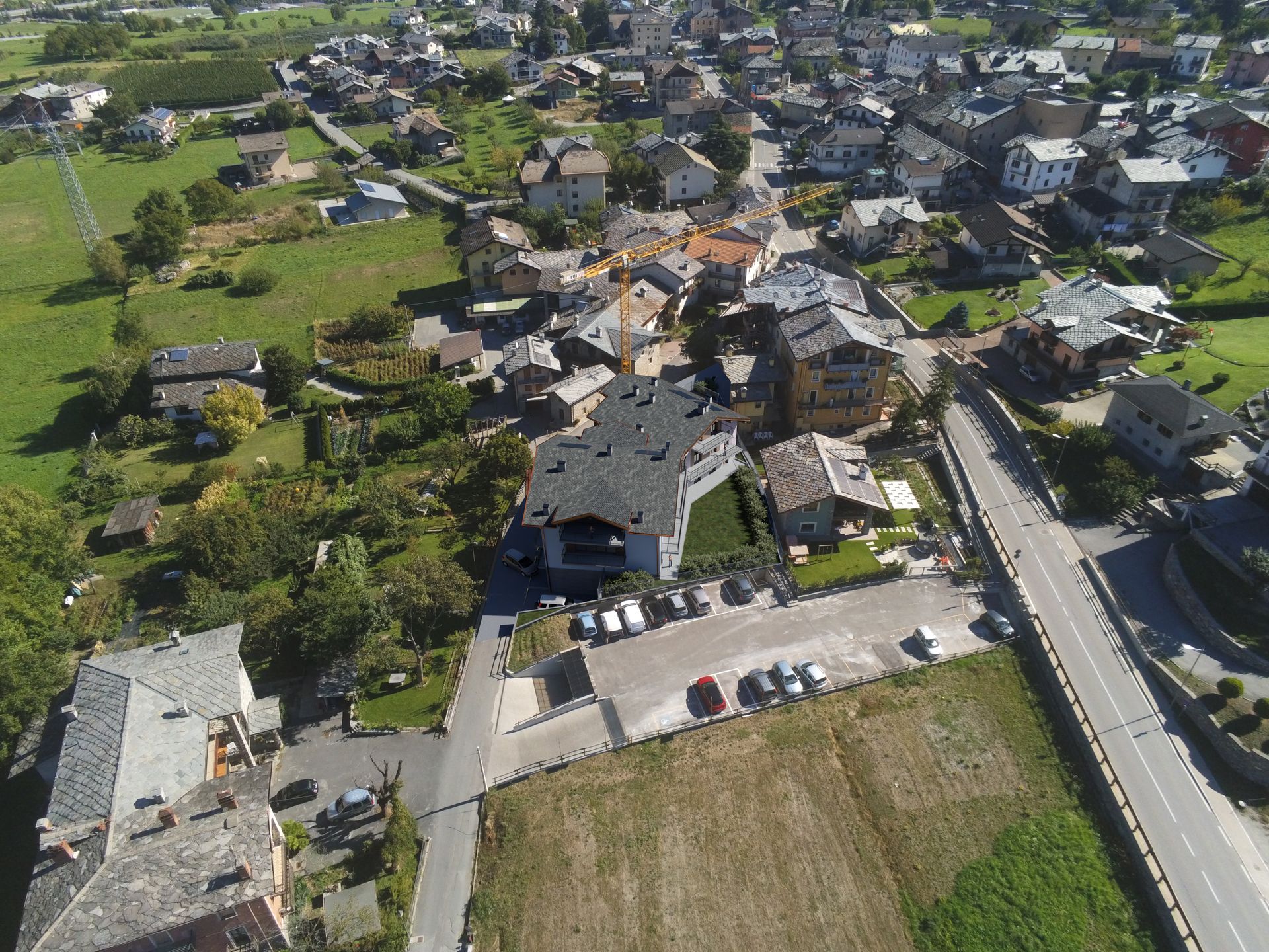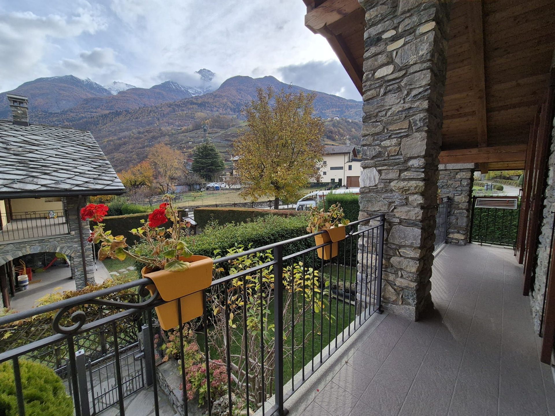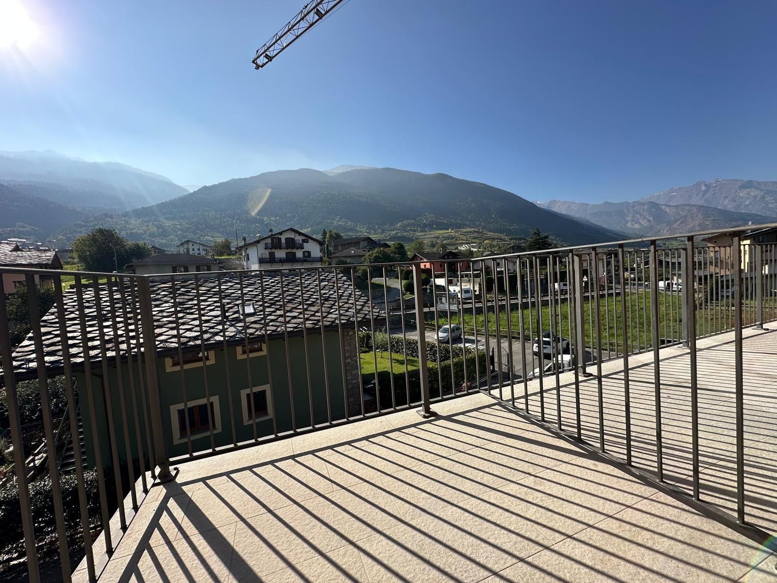 travi a vista del soffitto. Al terzo e ultimo piano di un complesso residenziale di poche unità abitative, in zona tranquilla e soleggiata, a pochi chilometri di distanza dai principali servizi del centro paese, a ridosso dell'area verde sportiva e di comodo accesso alla pista ciclabile che costeggia la Dora Baltea. Si accede tramite un'elegante scala in ferro esterna alla zona giorno open space. Attraverso l'ampia vetrata della porta finestra di accesso al terrazzo esterno esposto a ovest, predomina lo spettacolare panorama del ghiacciaio del Ruithor. L'angolo cottura è comodo e ben organizzato, è aperto al salotto. Sono presenti due bagni, due camere da letto, una delle quali con annesso bagno con vasca, nella zona giorno una scala in stile moderno in ferro conduce ad una